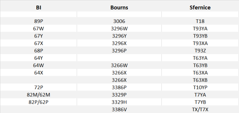 Equivalence des trimmers par fabricants