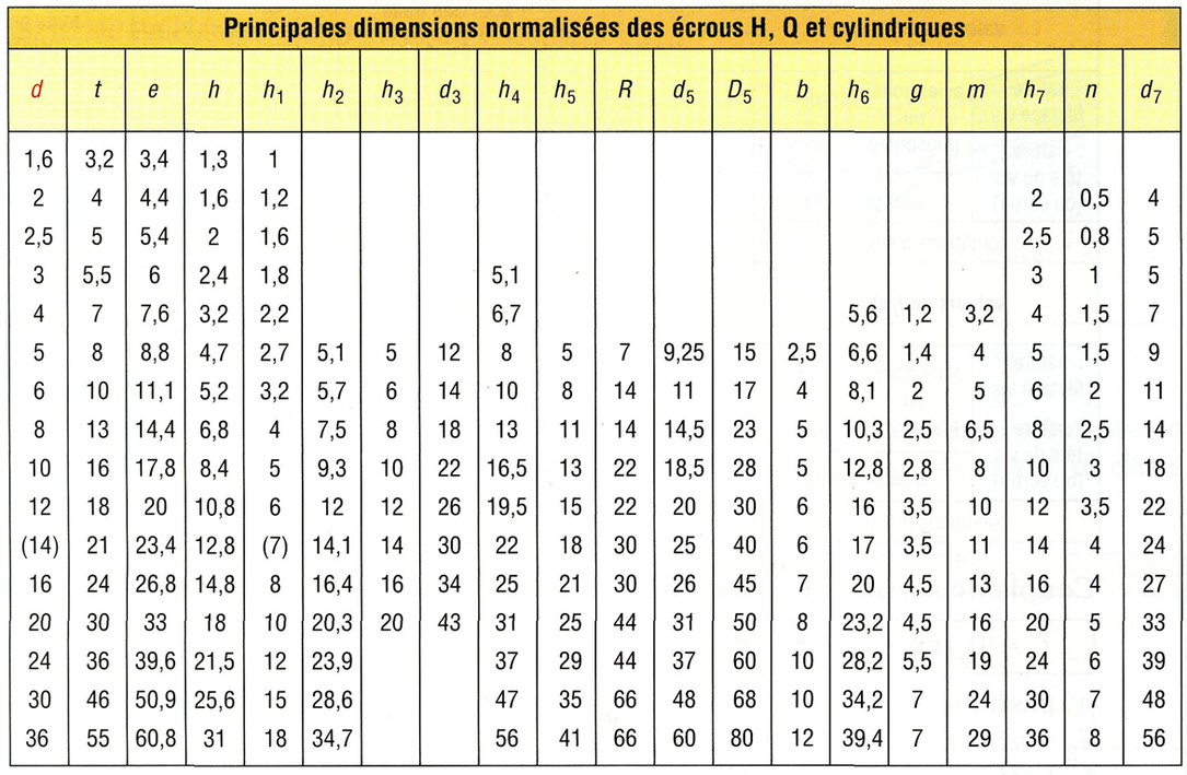 3 - Principaux écrous