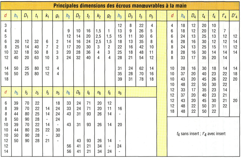 - Les écrous « MHT » pour hautes températures (T < 550 °C) et « Tristop » ont leur diamètre d légèrement déformé au niveau des parties coniques ; il en résulte un pincement avec la vis au montage.
