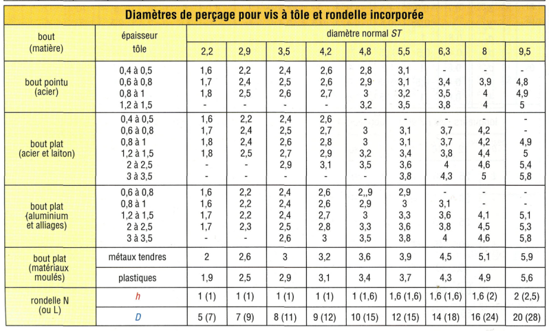 Dimensions des vis à tôle (norme NF EN ISO ....).; Cas des vis autoperceuses (ISO...). Aciers et Aciers inox.