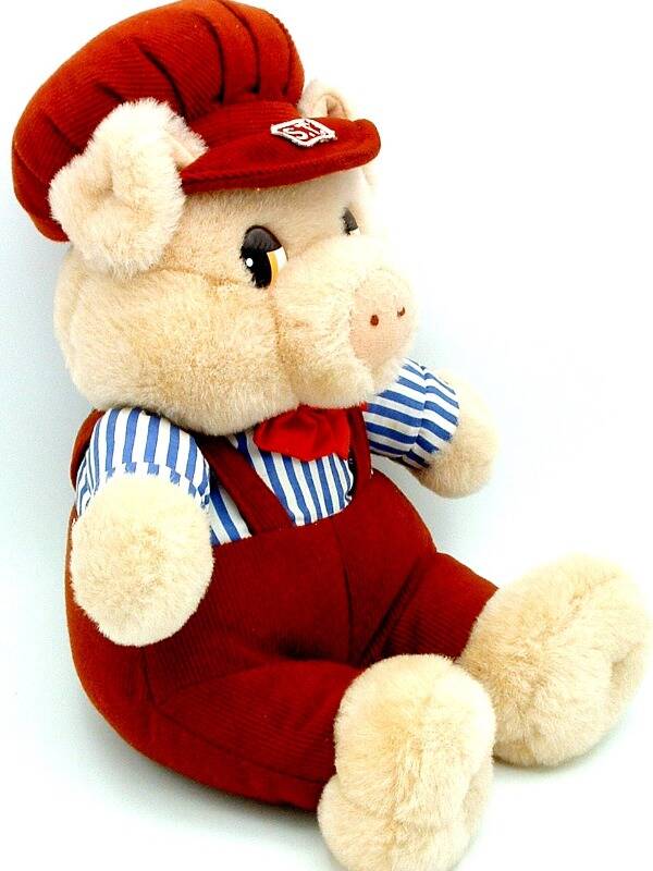 Cette peluche en forme de cochon est idéale pour les tout-petits.