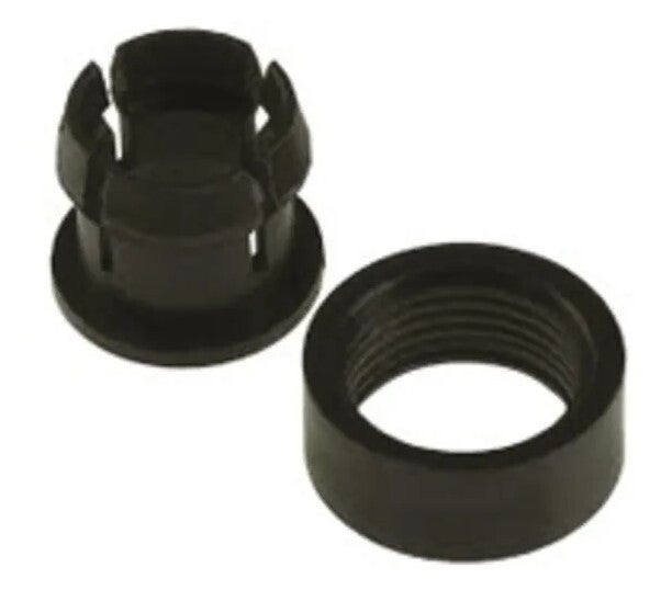 Le HLMP-0103, d'Avago Technologies, est un clip noir de montage sur panneau et une bague de retenue pour les LED à montage traversant T-1 3/4 (5 mm).