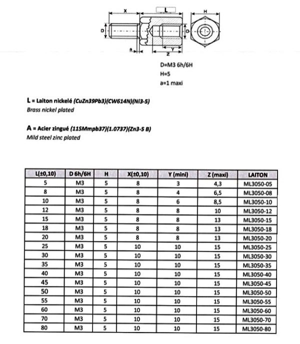 Entretoises hexagonales avec filetage Mâle et femelle M3