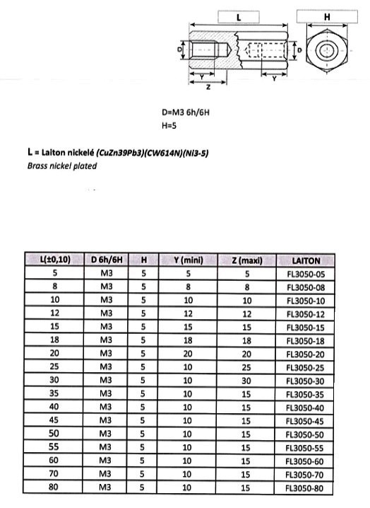 Entretoise hexagonale F/F laiton 5 M3 (Lot de 2)