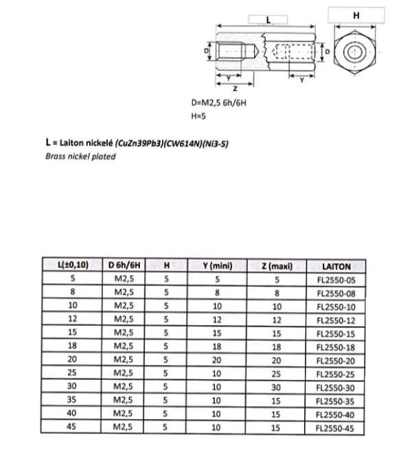 Entretoise hexagonale F/F laiton 5 M2,5 (Lot de 2)