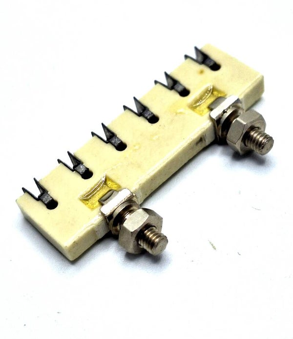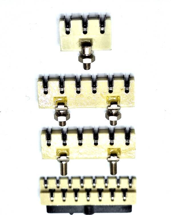 B - Barrette 6 encoches, pas 6,25, fixation Ø3 mâle avec écrou